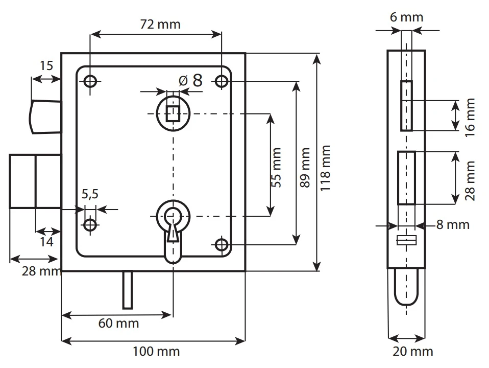 Dit poortslot van DX is geschikt voor een profielcilinder. Het slot is gemaakt van verzinkt staal en wordt geleverd met sluitplaat.