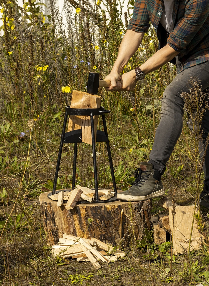 Maak in een handomdraai aanmaakhout met deze aanmaak houtklover. De aanmaak houtklover is gemakkelijk en veilig te gebruiken; er is geen bijl nodig. De set bestaat uit een houtklover, een standaard en een hamer.