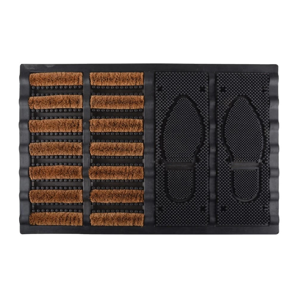 Ideaal voor het schoonmaken van het schoeisel. Door het robuuste en duurzame ontwerp en dankzij de rubber en de kokos borstels wordt hardnekkig en grove vuil van het schoeisel verwijderd. Omdat het hele artikel in rubber is uitgevoerd, heeft dit bovendien als voordeel dat de voetenveger niet wegglijdt.