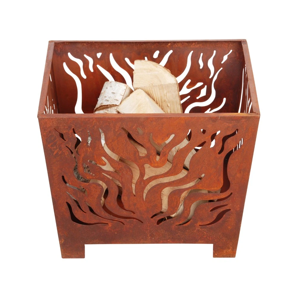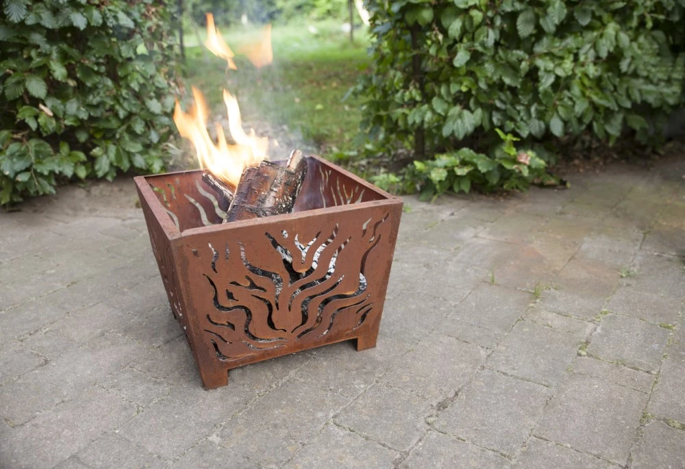 Wanneer metaal oxideert krijgt het een mooie en authentieke, roestige uitstraling, bovendien zorgt vuur in de tuin voor een warme sfeer en is een echte blikvanger. Deze vierkante vuurkorf heeft laser gesneden patronen en door vlammen creëert het een prachtig schouwspel. Bij gebruik zal het artikel onder invloed van vuur, weer en tijd verder gaan roesten waardoor het de patina nog authentieker maakt.