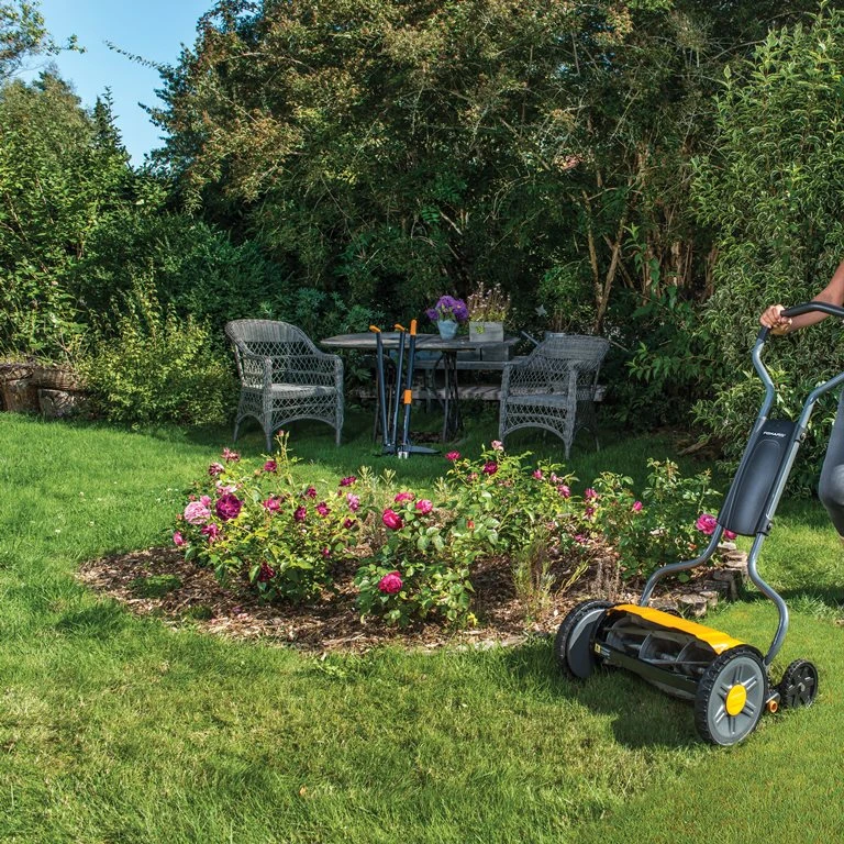De Fiskars Grasmaaier StaySharp Plus snijdt het gras net zo precies als een schaar. Zo krijgt u fijn, precies en gemaaid gazon. Deze grasmaaier is ook erg milieuvriendelijk en stil. Zo kunt u stil grasmaaien en hebben de buren geen last van u. De Fiskars grasmaaier is gemaakt volgens de Fiskars designfilosofie. Dit betekent dat alle Fiskars snoeischaren duurzaam en ergonomisch zijn. Hierdoor wordt tuinieren makkelijker, efficiënter en dus leuker voor uw. De wielen zijn naar binnen gedraaid waardoor u perfect langs de randjes kan maaien.Â